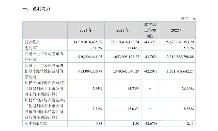此外,在市場穩(wěn)步擴張的同時,貝特瑞大力推進降本增效及精益管理。報告期內(nèi),公司營業(yè)成本109.6億元,同比下降47.01%;整體毛利率23.02%,同比提升5.36%,對抗周期波動、抵御市場風(fēng)險的能力持續(xù)提升。