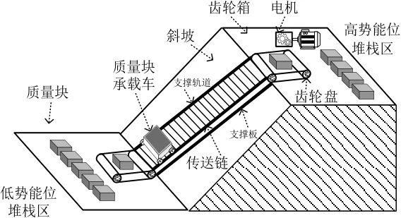 圖1 傳送鏈式斜坡重力儲能系統(tǒng)