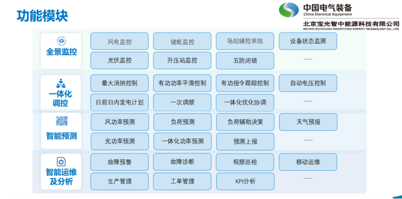 1.電源側(cè):要求新能源發(fā)電與就地負(fù)荷配套,原則上不允許向電網(wǎng)反送電,僅允許從電網(wǎng)獲取必要支撐。這種模式需要構(gòu)建源網(wǎng)荷儲(chǔ)一體化智能調(diào)控系統(tǒng),實(shí)現(xiàn)與省調(diào)、地調(diào)的上下級(jí)協(xié)同,通過(guò)升壓站接口對(duì)風(fēng)光儲(chǔ)設(shè)備進(jìn)行集中調(diào)度和協(xié)調(diào)控制。系統(tǒng)功能架構(gòu)主要包含三個(gè)層次:基礎(chǔ)監(jiān)視控制、集中快速控制和分級(jí)優(yōu)化調(diào)度,重點(diǎn)解決風(fēng)光儲(chǔ)最優(yōu)消納與電網(wǎng)安全運(yùn)行的平衡問(wèn)題。該系統(tǒng)功能可劃分為四大模塊:全景監(jiān)控模塊負(fù)責(zé)場(chǎng)站常規(guī)監(jiān)測(cè)和關(guān)鍵指標(biāo)分析;協(xié)同控制模塊實(shí)現(xiàn)與電網(wǎng)的聯(lián)合調(diào)控;預(yù)測(cè)模塊應(yīng)對(duì)新能源波動(dòng)性挑戰(zhàn);運(yùn)維模塊則通過(guò)故障預(yù)警、狀態(tài)診斷等手段提升可靠性,減少停電時(shí)間。此外,系統(tǒng)還集成有功/無(wú)功控制、優(yōu)化調(diào)度等高級(jí)分析功能,形成完整的智能調(diào)控平臺(tái),為風(fēng)光儲(chǔ)一體化運(yùn)行提供全面支撐。