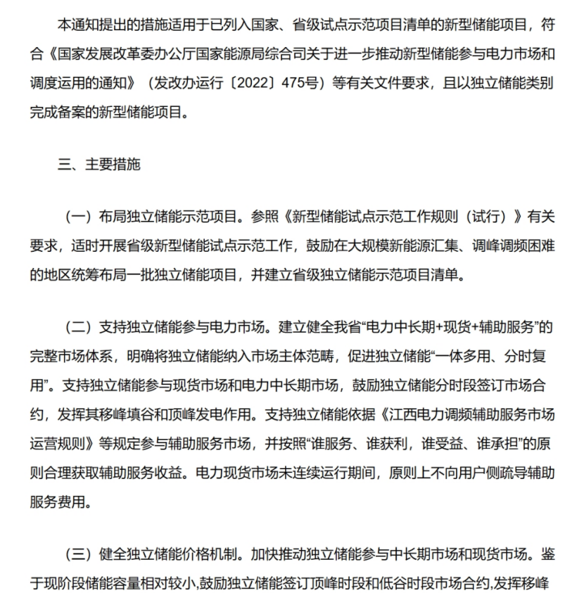 中國儲能網(wǎng)訊:江西省發(fā)改委4月16日印發(fā)的《關(guān)于支持獨(dú)立儲能健康有序發(fā)展的通知》,在全國率先構(gòu)建起"電力中長期+現(xiàn)貨+輔助服務(wù)"三位一體市場體系,為獨(dú)立儲能參與電力市場開辟了全新路徑。