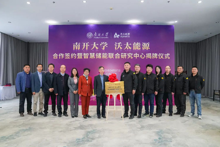 儀式現(xiàn)場(chǎng),沃太能源總裁王珺、南開大學(xué)副校長(zhǎng)方勇純共同為“南開大學(xué)-沃太能源智慧儲(chǔ)能聯(lián)合研究中心”揭牌,標(biāo)志著這一平臺(tái)的正式成立。隨后,在雙方代表的共同見證下,沃太能源總裁王珺分別與南開大學(xué)科學(xué)技術(shù)研究部和校團(tuán)委相關(guān)負(fù)責(zé)人簽署合作協(xié)議,為校企長(zhǎng)期緊密的合作筑牢根基。