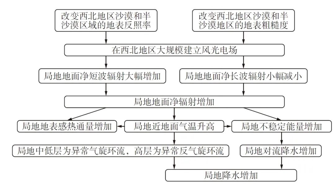 ↑ 我國(guó)西北地區(qū)大規(guī)模風(fēng)電場(chǎng)和光伏電站建設(shè)引起局地和區(qū)域環(huán)流變化的過(guò)程機(jī)理