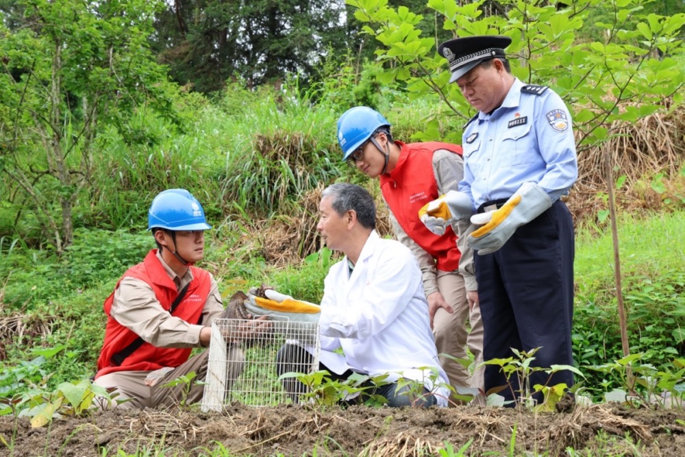 圖為當(dāng)?shù)毓╇姴块T員工在野生動物保護站、森林公安共同見證下放生雨后夜巡中救助的國二級保護動物夜鷹。蔡晶/攝