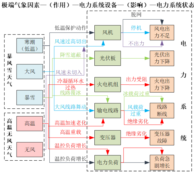 3)分析極端天氣下新型電力系統(tǒng)風(fēng)險(xiǎn)產(chǎn)生機(jī)理。