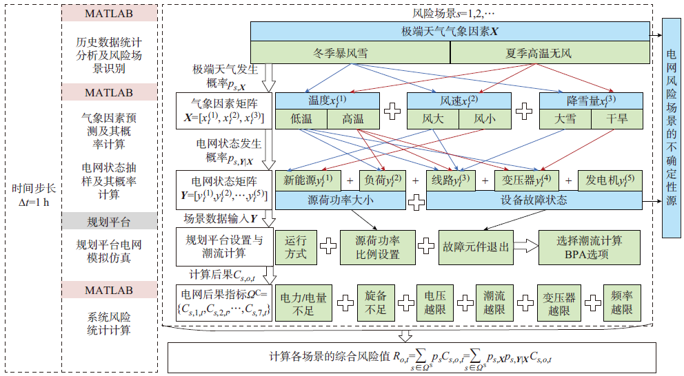 從風(fēng)險(xiǎn)角度出發(fā),極端天氣將給氣象敏感的新型電力系統(tǒng)源、網(wǎng)、荷側(cè)帶來更多種、更復(fù)雜的風(fēng)險(xiǎn)不確定性以及更加多元的風(fēng)險(xiǎn)后果,同時(shí),實(shí)際系統(tǒng)風(fēng)險(xiǎn)的難以評(píng)估是目前大量研究成果無法真正應(yīng)用的核心問題。因此,極端天氣下,深入探索氣象-電力耦合關(guān)系、基于極端氣象條件識(shí)別風(fēng)險(xiǎn)、全面量化風(fēng)險(xiǎn)多重來源與多元后果、基于規(guī)劃平臺(tái)準(zhǔn)確評(píng)估實(shí)際系統(tǒng)風(fēng)險(xiǎn)是本文的主要關(guān)注點(diǎn)和創(chuàng)新性工作。