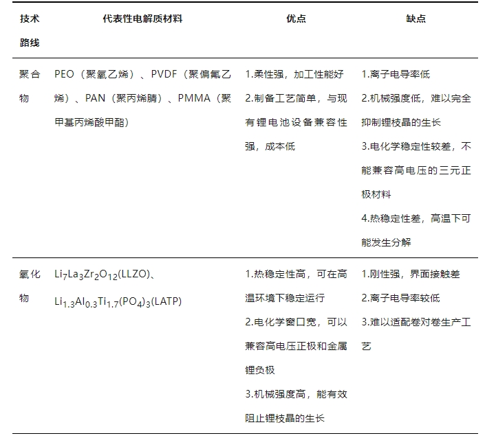 表1 全固態(tài)電池技術(shù)路線及優(yōu)缺點(diǎn)