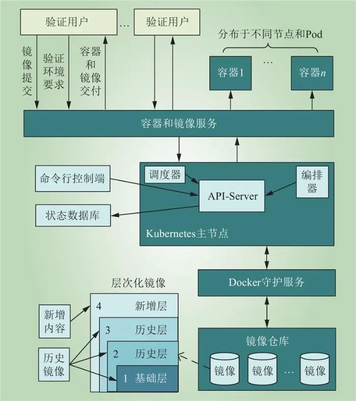 驗(yàn)證平臺(tái)在此基礎(chǔ)上進(jìn)行封裝,形成相比于虛擬機(jī)更細(xì)粒度的容器資源調(diào)度和基于鏡像的對(duì)多種運(yùn)行環(huán)境的支持。