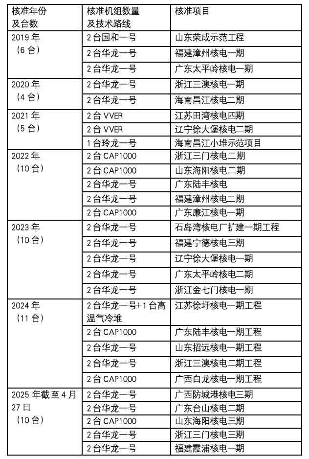 2019—2025年我國(guó)核準(zhǔn)核電項(xiàng)目情況