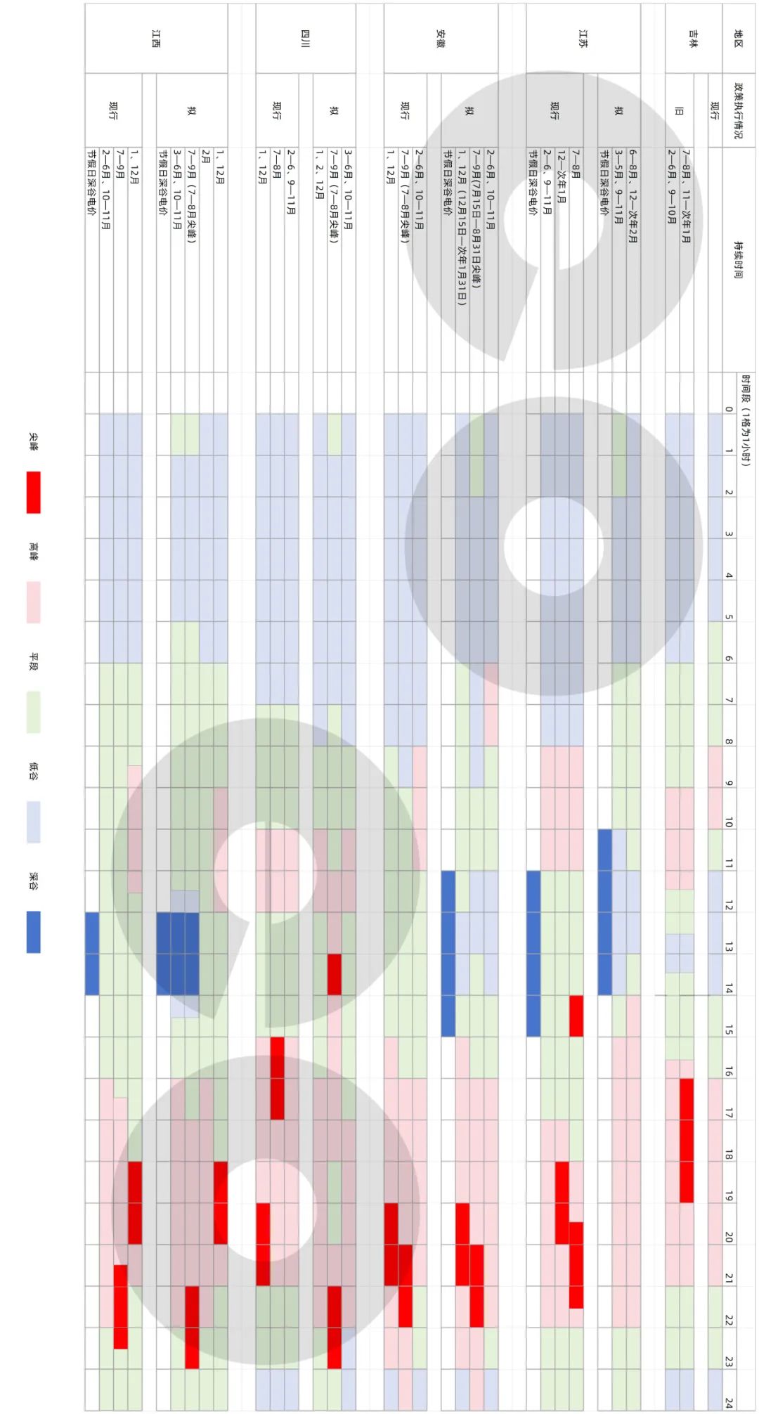 ②江蘇分時電價征求意見稿未提及尖峰電價時段調(diào)整,故未做標注。