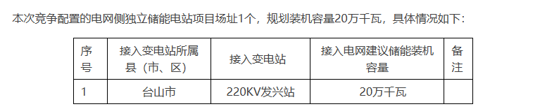 關(guān)于臺山市發(fā)興站獨立儲能電站項目競爭配置的公告