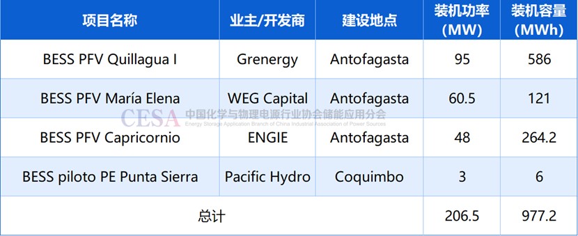 表 2025年3月智利環(huán)評獲批的鋰電池儲能項目
