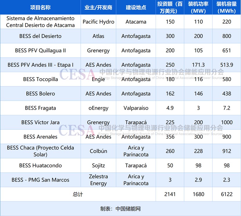 智利2050年儲能長期目標為6GW,目前已投運、調(diào)試、在建、申報建設儲能項目共4.552GW,已達到2050年目標的76%。