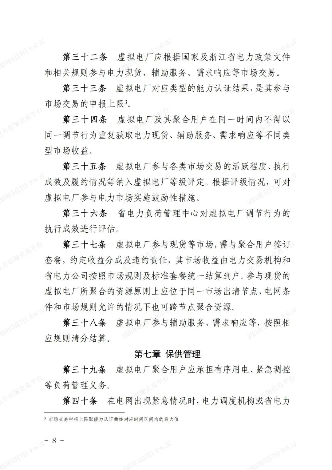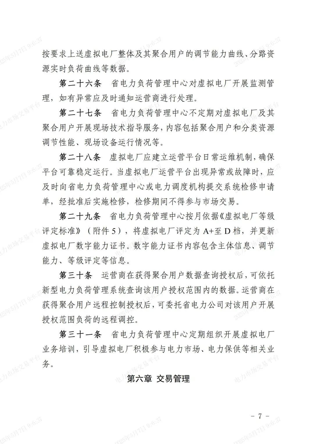 中國儲能網(wǎng)訊:據(jù)國網(wǎng)浙江省電力有限公司6日消息,《浙江省虛擬電廠運營管理細則(試行)》(下稱《細則》)近日印發(fā),其首次系統(tǒng)明確虛擬電廠從“注冊接入—能力認證—運行管理—交易管理—保供管理—退出管理”的全流程閉環(huán)管理要求,并依托新型電力負荷管理系統(tǒng)實現(xiàn)資源“可觀、可測、可調(diào)、可控”,推動虛擬電廠健康運營,助力新型電力系統(tǒng)高質(zhì)量發(fā)展。