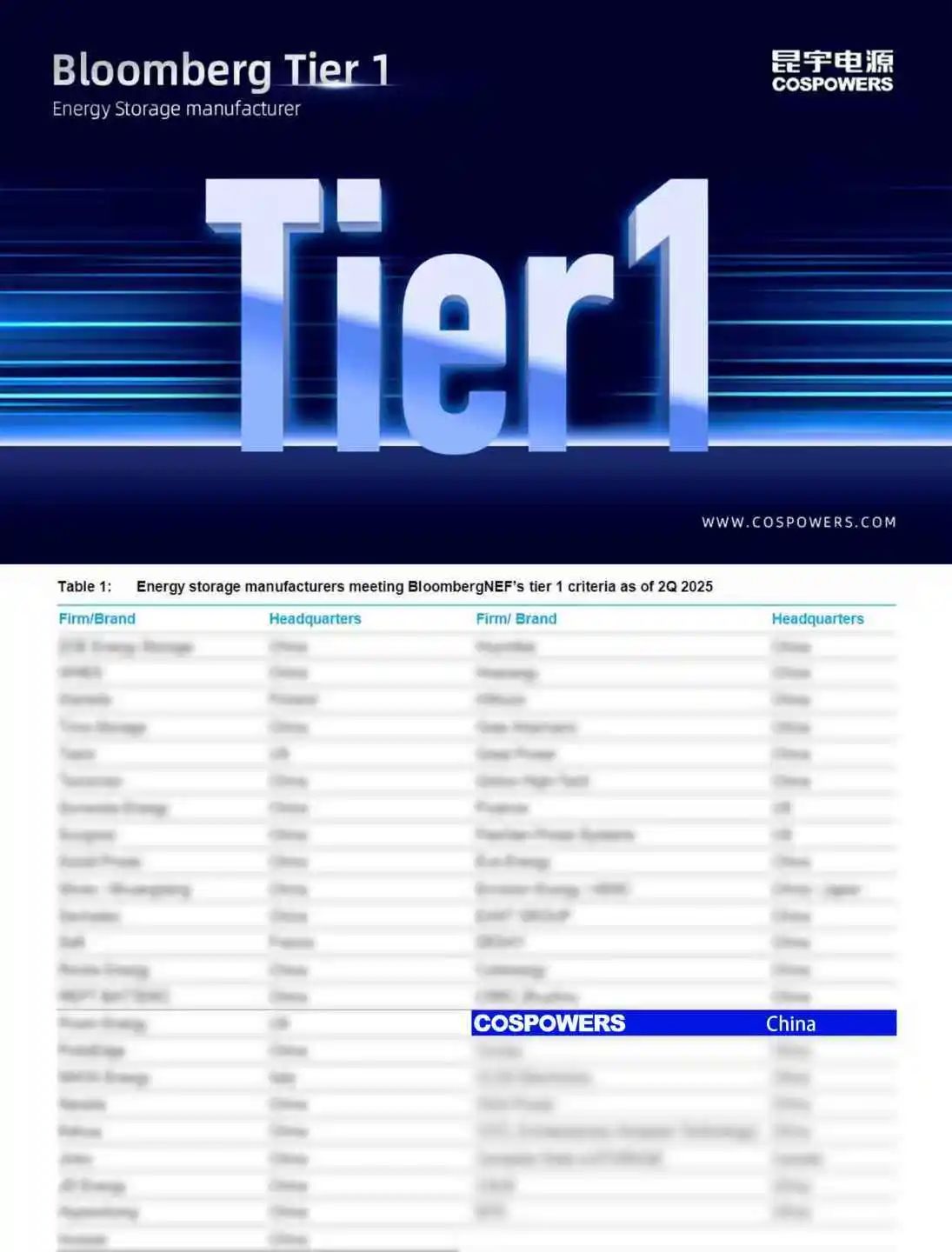 中國(guó)儲(chǔ)能網(wǎng)訊:近日,國(guó)際權(quán)威研究機(jī)構(gòu)BloombergNEF(彭博新能源財(cái)經(jīng),簡(jiǎn)稱(chēng)BNEF)正式發(fā)布《2025年第二季度全球儲(chǔ)能系統(tǒng)供應(yīng)商Tier 1榜單》(BNEF Energy Storage Tier 1 List Q2 2025)。昆宇電源憑借卓越的技術(shù)創(chuàng)新實(shí)力、全球化項(xiàng)目交付能力及穩(wěn)健的供應(yīng)鏈體系,成功躋身全球頂級(jí)儲(chǔ)能廠商行列。