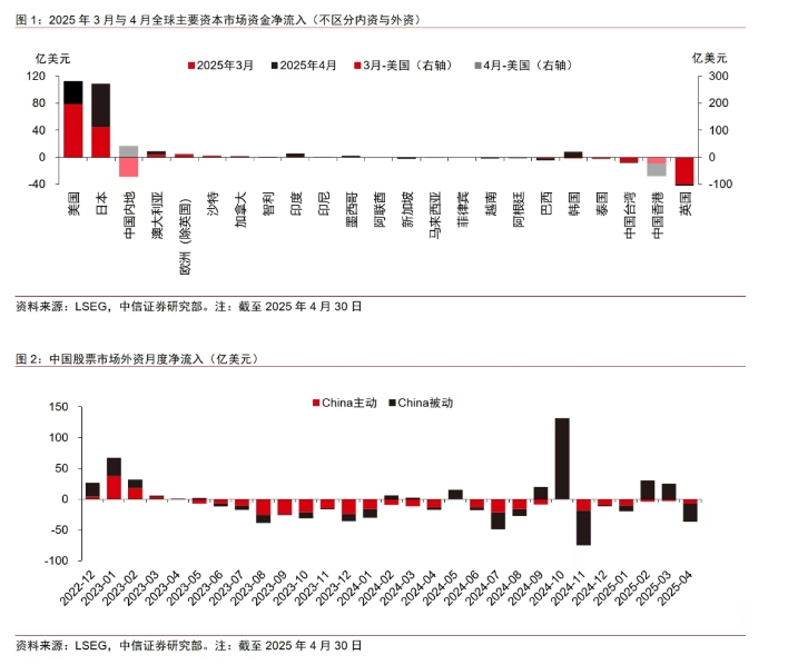 ▍2025年3月-4月,“對等關(guān)稅”超預(yù)期落地后頻繁反轉(zhuǎn),受關(guān)稅影響較大的新興市場資金持續(xù)流出。