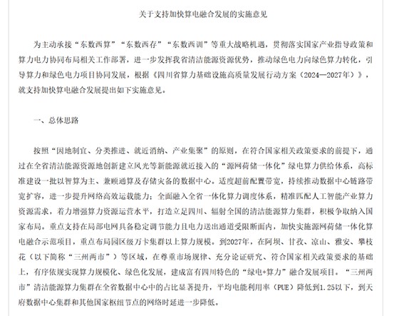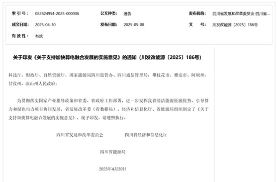 中國(guó)儲(chǔ)能網(wǎng)訊:作為全國(guó)水電資源稟賦最優(yōu)越的省份,四川正以系統(tǒng)性政策創(chuàng)新為筆,勾勒出一幅“綠電+算力”深度融合的新型能源產(chǎn)業(yè)圖景。5月8日,《關(guān)于支持加快算電融合發(fā)展的實(shí)施意見(jiàn)》的正式發(fā)布,標(biāo)志著四川在儲(chǔ)能技術(shù)與算力產(chǎn)業(yè)耦合領(lǐng)域邁出里程碑式步伐。