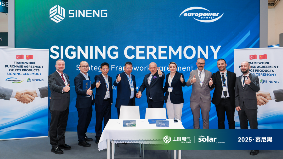 中國儲能網訊:近日,在2025 Intersolar Europe展會現場,上能電氣股份有限公司(以下簡稱“上能電氣”)與土耳其知名新能源公司Europower Enerji(以下簡稱“Europower”)正式簽署框架合作協議,進一步加速對土耳其及歐亞儲能市場的開拓與布局。