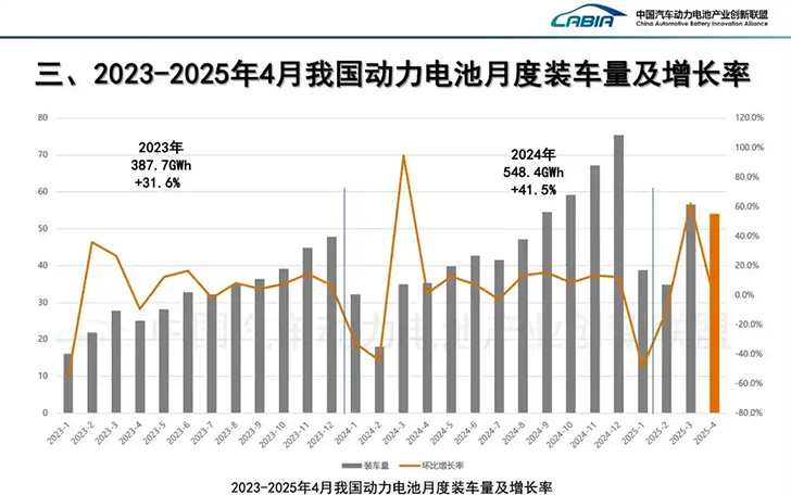 中國(guó)儲(chǔ)能網(wǎng)訊:2025年4月,中國(guó)動(dòng)力電池市場(chǎng)在高速增長(zhǎng)中暗流涌動(dòng)。根據(jù)中國(guó)汽車(chē)動(dòng)力電池產(chǎn)業(yè)創(chuàng)新聯(lián)盟近日公布的數(shù)據(jù),4月國(guó)內(nèi)動(dòng)力電池裝車(chē)量達(dá)54.1 GWh,同比猛增52.8%。