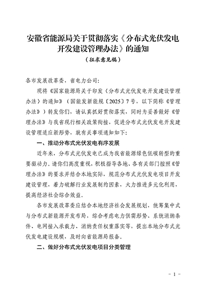 中國儲能網(wǎng)訊:5月20日,安徽省能源局發(fā)布《關(guān)于貫徹落實 (分布式光伏發(fā)電開發(fā)建設(shè)管理辦法〉的通知(征求意見稿)》。