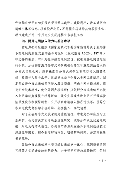 文件提出,在負荷方面,鼓勵分布式光伏發(fā)電項目通過光儲充一體化、源網(wǎng)荷儲協(xié)同互動等方式提升就地消納能力。對于暫無可開放容量地區(qū),依托存量負荷建設(shè)的分布式光伏發(fā)電項目,在通過加裝儲能設(shè)施滿足相關(guān)要求前提下,可由電網(wǎng)企業(yè)評估后并網(wǎng)接入。依托新增負荷建設(shè)的全部自發(fā)自用分布式光伏發(fā)電項目,不受可接入容量限制。