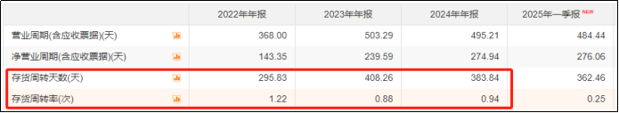 璞泰來的存貨規(guī)模從2021年的49.64億元激增至2023年的114.78億元,占營收比重高達75%,遠高于同行杉杉股份(11%)和貝特瑞(8.78%)。高價庫存(石墨化原料)其實也不是問題,關(guān)鍵是2023年開始公司的存貨周轉(zhuǎn)率明顯降低,2023-2024年公司的平均存貨周轉(zhuǎn)率相比2022年的1.22次下降了25%,這意味著高景氣時期的高價存貨消化速度大幅放緩,進而導致2023年計提存貨跌價準備10.5億元,導致10.75億的資產(chǎn)減值損失,而2024年全年繼續(xù)計提7.92億元資產(chǎn)減值,其中存貨跌價依舊達到6.88億,嚴重拖累了利潤。