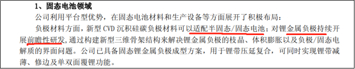 開頭曾經(jīng)提到了,雖然目前固態(tài)電解質(zhì)的技術(shù)路線屬于“三分天下”,但負極材料的硅基負極路線短期是相對清晰的。當然市場普遍認為固態(tài)電池的負極終極形態(tài)是鋰金屬,年報顯示璞泰來也在積極研發(fā)鋰金屬負極。