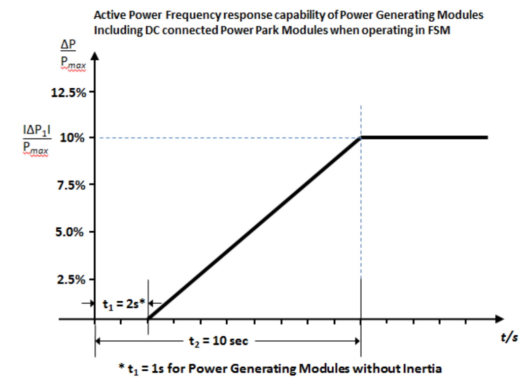 BESS初始有功功率頻率響應(yīng)的延遲不得大于1秒。如果風(fēng)電廠(chǎng)電源不能滿(mǎn)足這一要求,則需要提供技術(shù)證據(jù),證明有功功率頻率響應(yīng)初始啟動(dòng)所需的時(shí)間。