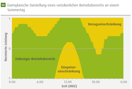 相較于電網(wǎng)中性標準,電網(wǎng)友好型儲能在運營中的限制條件顯著更高(參見圖3示例)。為設(shè)置必要激勵并保障運營商經(jīng)濟可行性,運營商將獲得服務(wù)報酬。立法機構(gòu)通過《能源經(jīng)濟法》第11a條開放了儲能設(shè)施招標機制,允許將相關(guān)成本納入監(jiān)管認可范圍。其前提是:儲能設(shè)施對于電網(wǎng)運營商高效履行"運營安全、可靠且高效能供電網(wǎng)絡(luò)"的法定義務(wù)具有必要性。