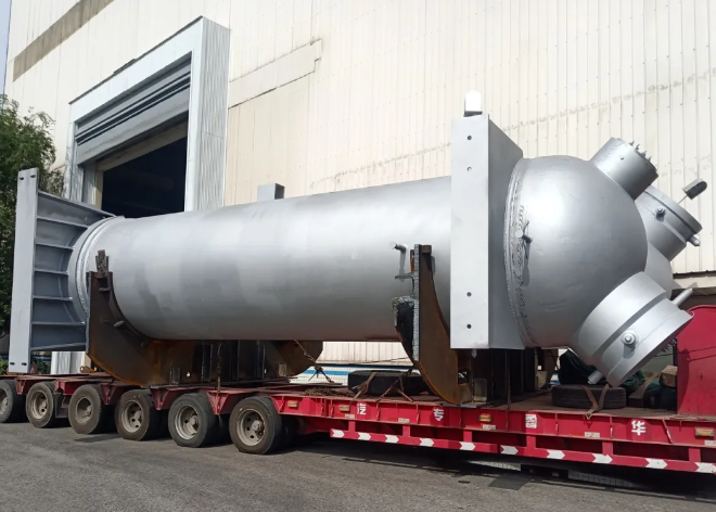 該項目換熱器管系采用特殊結(jié)構設計,有效提升熱能轉(zhuǎn)換效率。該設備屬于“發(fā)卡式”雙殼體結(jié)構,是公司目前為止制造的最大直徑發(fā)卡式結(jié)構換熱器,其制造工藝與常規(guī)發(fā)卡式換熱器存在較大差別,難度更大,創(chuàng)下廠內(nèi)同類產(chǎn)品制造新紀錄。
