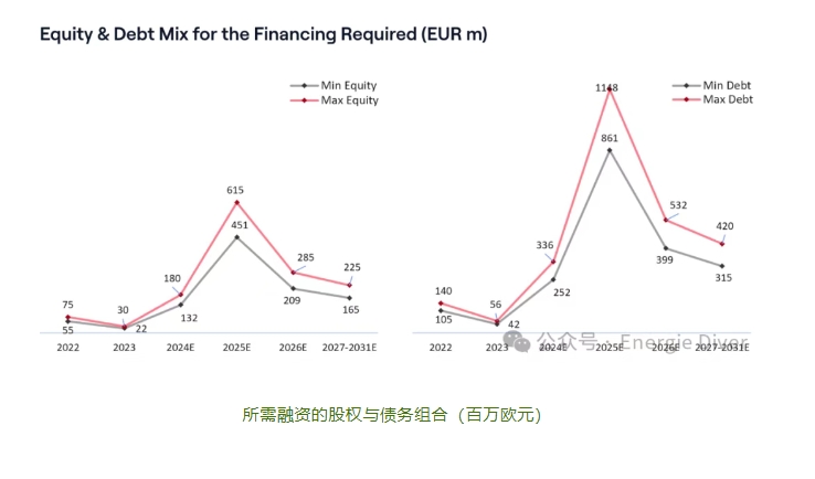 根據(jù)德國每年新增的電網(wǎng)側儲能裝機容量(2022-2031年),我們預測了以下總融資需求:
