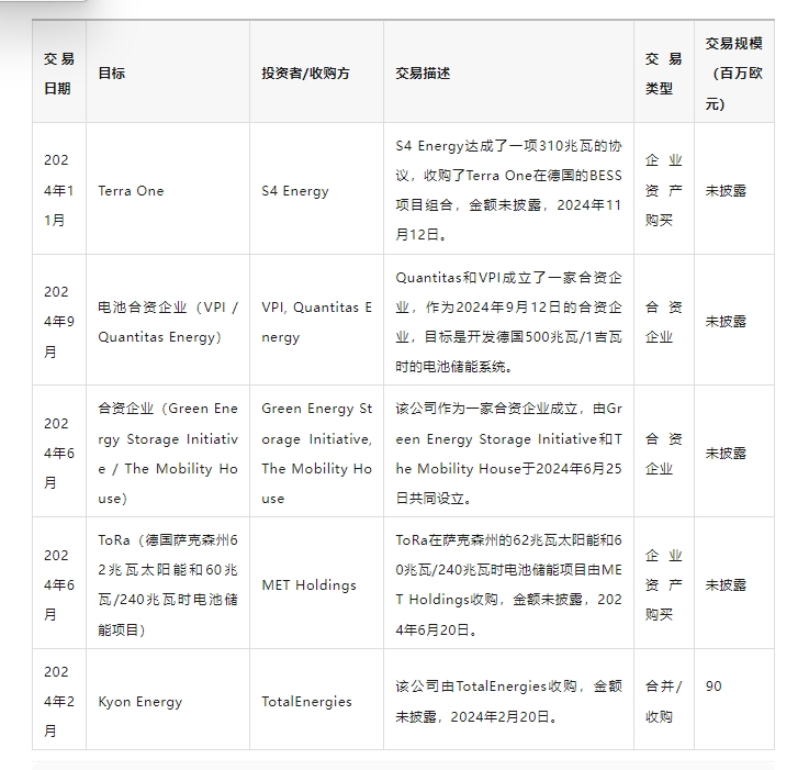 四、2024年選定BESS儲能電站投資收并購交易概覽