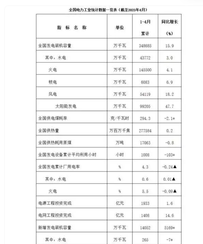 中國儲能網(wǎng)訊:5月22日訊 國家能源局今日發(fā)布1-4月份全國電力工業(yè)統(tǒng)計數(shù)據(jù)。