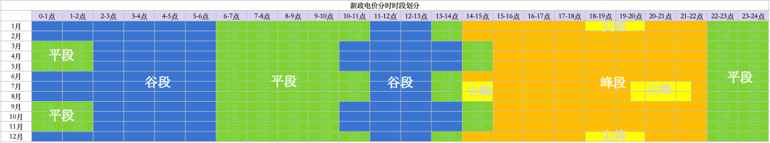 電價分時最大的調(diào)整主要來自于上午的峰值電價變?yōu)槠街惦妰r,中午的平值電價變?yōu)楣戎惦妰r,明顯降低了白天工作時段整體電價水平。