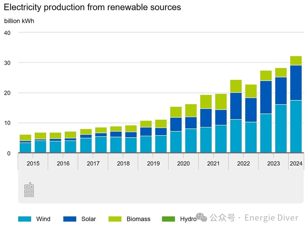 與其他許多國家一樣,荷蘭的目標(biāo)是到2050年實現(xiàn)凈零排放。2024年上半年,可再生能源占國內(nèi)能源生產(chǎn)的比例超過50%,總計323億千瓦時。風(fēng)能(尤其是海上風(fēng)能)是主要來源,其次是太陽能和生物質(zhì)能。與此同時,煤炭發(fā)電量較2023年下降了35%。