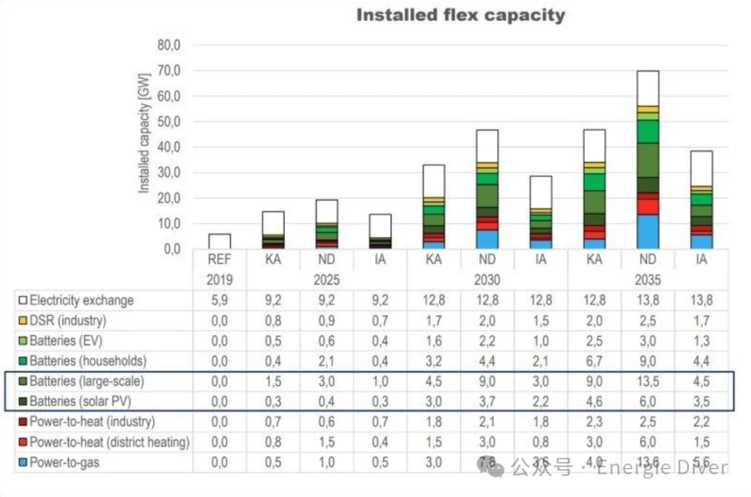 為了應(yīng)對可再生能源快速增長帶來的更多儲能需求,荷蘭電網(wǎng)運營商制定了BESS技術(shù)的三種部署情景:中(KA)、高(ND)和低(IA)。特別是對于電網(wǎng)級和與光伏場站共址的項目,到2030年預(yù)計容量將從5.2GW增至12.7GW,到2035年將從8GW增至19.5GW。理論上這聽起來很有前景,但荷蘭在此過程中面臨一個比其他歐洲國家更為突出的復(fù)雜挑戰(zhàn):電網(wǎng)阻塞。