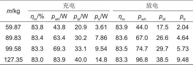 (3)系統(tǒng)機械環(huán)節(jié)效率因充放電工況切換、質量塊質量變化而產生的變化很小;傳動損耗在機械損耗中的占比很小。