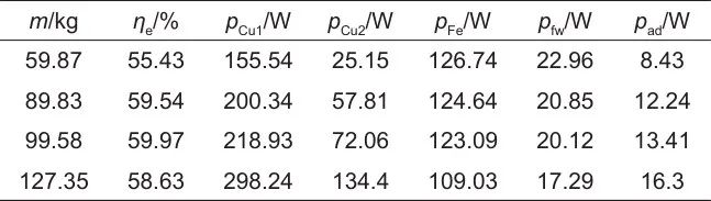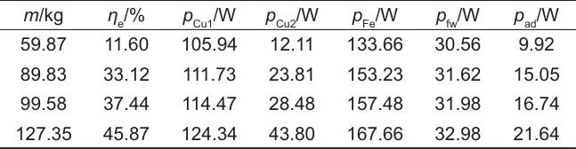 此外,由實驗數(shù)據(jù)計算的m=127.35 kg時的系統(tǒng)各損耗見表5。