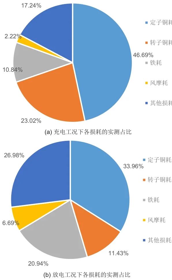 (2)系統(tǒng)充電時,電氣損耗占比與放電時相比明顯升高,機械損耗占比明顯降低。