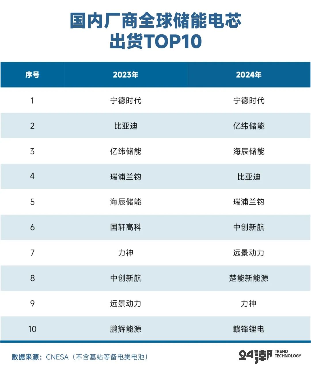 2024年,公司反超瑞浦蘭鈞、比亞迪,躋身全球前三,僅次于寧德時代和億緯儲能。