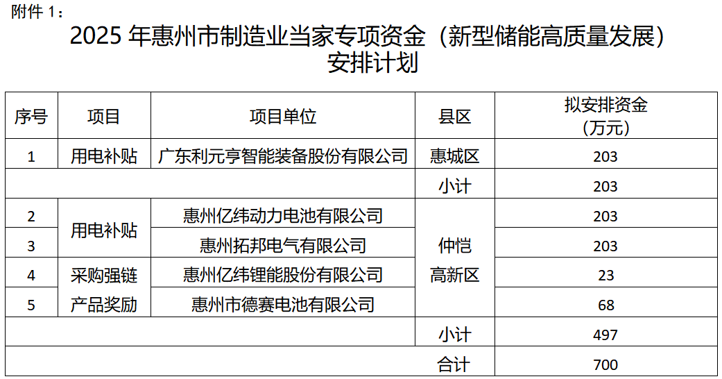 附件:1.2025年惠州市制造業(yè)當家專項資金(新型儲能高質(zhì)量發(fā)展)安排計劃