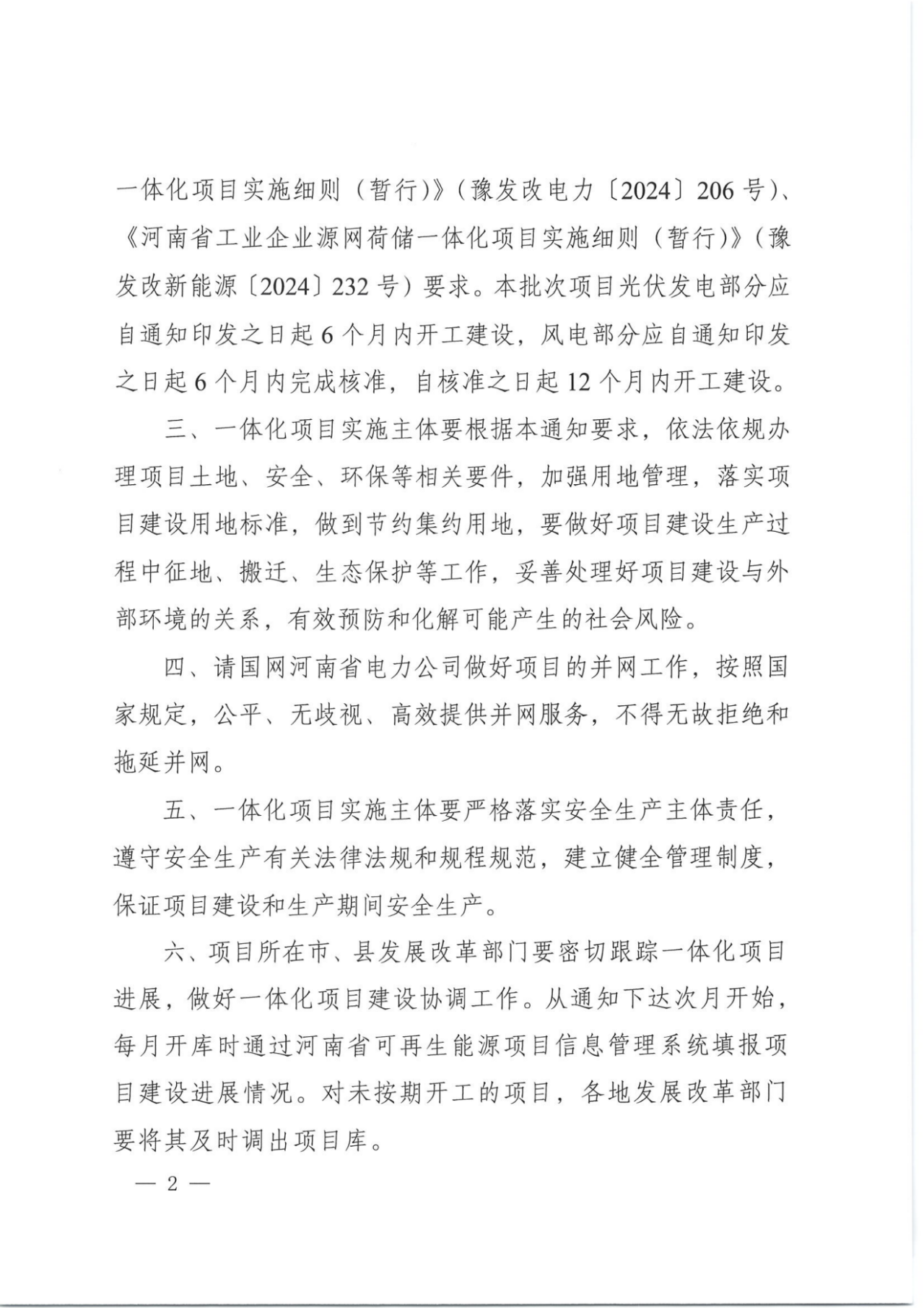 本批次項目光伏發(fā)電部分應(yīng)自通知印發(fā)之日起6個月內(nèi)開工建設(shè),風(fēng)電部分應(yīng)自通知印發(fā)之日起6個月內(nèi)完成核準,自核準之日起12個月內(nèi)開工建設(shè)。