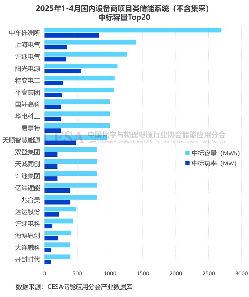 在如此澎湃的發(fā)展勢(shì)頭下,各家企業(yè)競(jìng)逐前列。接下來,我們將通過詳細(xì)數(shù)據(jù),一窺2025年1-4月中國新型儲(chǔ)能招投標(biāo)市場(chǎng)的競(jìng)爭(zhēng)格局。