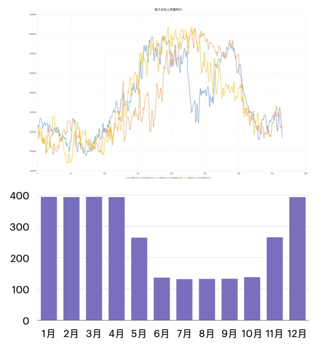 四川過去3年水電上網(wǎng)電量與2025年年度集中競(jìng)價(jià)分月價(jià)格