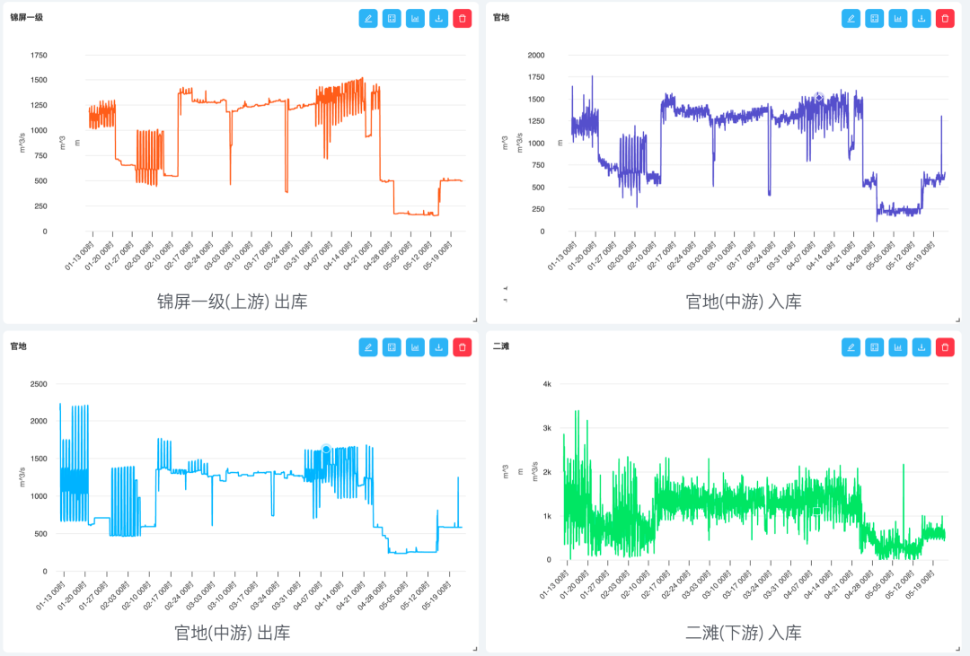 以雅礱江的錦屏一級(jí)(上游),官地(中游)與二灘(下游,與金沙江匯流)三個(gè)水電站為例: