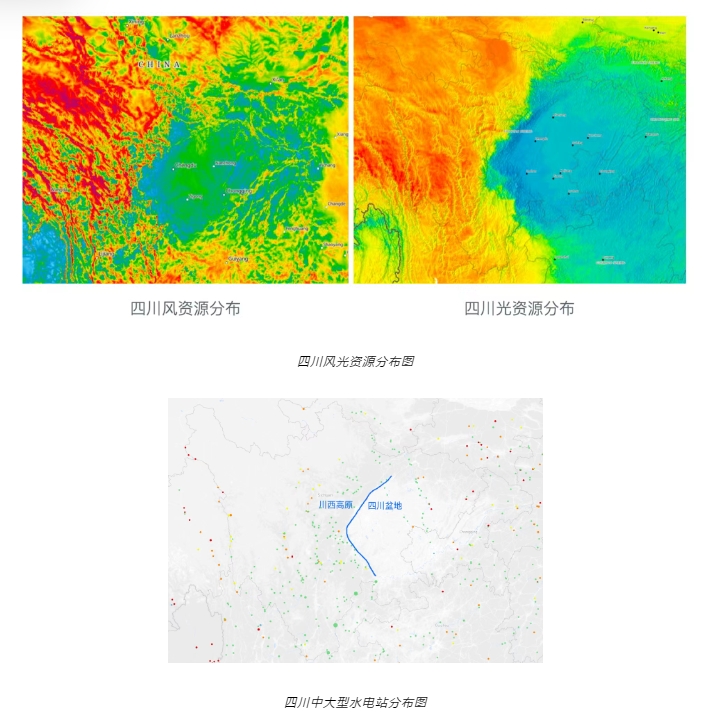 四川盆地常年高比例云覆蓋,也因?yàn)樘幱谂璧?,風(fēng)資源也差,而成都,重慶等大城市與負(fù)荷中心基本都位于四川盆地。但四川市場(chǎng)并不只有四川盆地,還有甘孜,阿壩,涼山構(gòu)成的川西高原,氣候與四川盆地迥異。大多數(shù)水能資源集中在川西高原(平原落差小),同時(shí),無論是風(fēng)資源還是光資源,川西高原都顯著優(yōu)于四川盆地,這不僅是風(fēng)光資源的斷面,同時(shí)也是經(jīng)濟(jì)發(fā)展的斷面和電力系統(tǒng)的斷面。