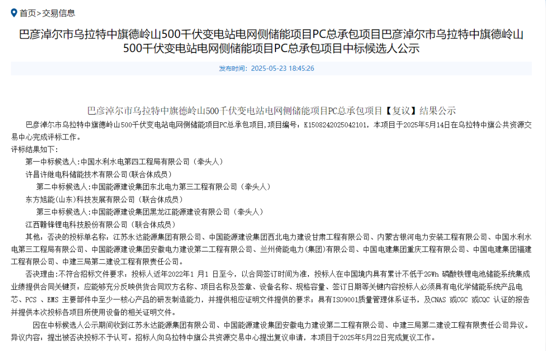 5月23日,烏拉特中旗公共資源交易中心公布該項(xiàng)目復(fù)議結(jié)果,其中顯示: