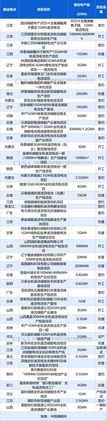 表 2024年部分液流電池儲(chǔ)能產(chǎn)業(yè)類(lèi)項(xiàng)目統(tǒng)計(jì)