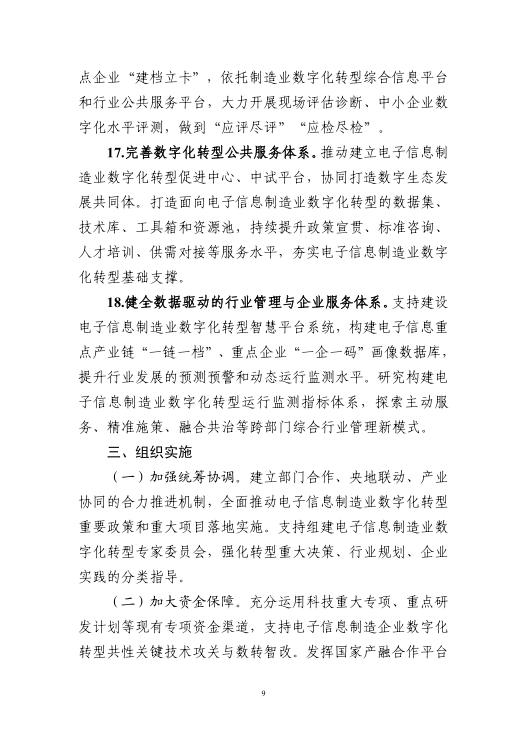 三部門關(guān)于印發(fā)《電子信息制造業(yè)數(shù)字化轉(zhuǎn)型實施方案》的通知