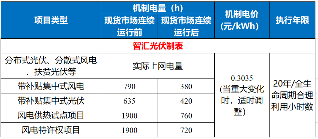 表:存量項(xiàng)目機(jī)制電量和機(jī)制電價(jià)規(guī)定