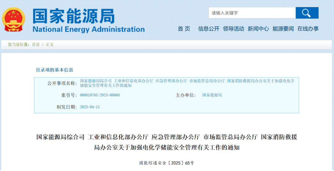 中國儲能網(wǎng)訊:近日,國家能源局綜合司等部門聯(lián)合發(fā)布《關(guān)于加強(qiáng)電化學(xué)儲能安全管理有關(guān)工作的通知》,從提升電池系統(tǒng)本質(zhì)安全水平、健全標(biāo)準(zhǔn)體系、強(qiáng)化全生命周期安全管理責(zé)任等六個方面,為儲能行業(yè)劃出安全“底線”,也為行業(yè)高質(zhì)量發(fā)展提供清晰方向。